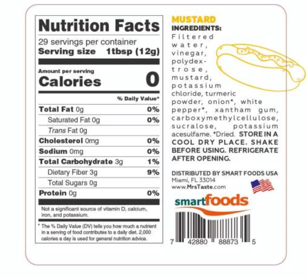 La mostaza Mrs Taste está elaborada con ingredientes naturales a base de la semilla de mostaza amarilla seleccionada. Un producto 100% natural, especialmente preparado para aquellos que no renuncian a una dieta equilibrada. y lo mejor: Conserva el sabor característico de la mostaza, agregando más sabor a tu dieta con CERO SODIO, CERO AZÚCAR Y CERO CALORÍAS.